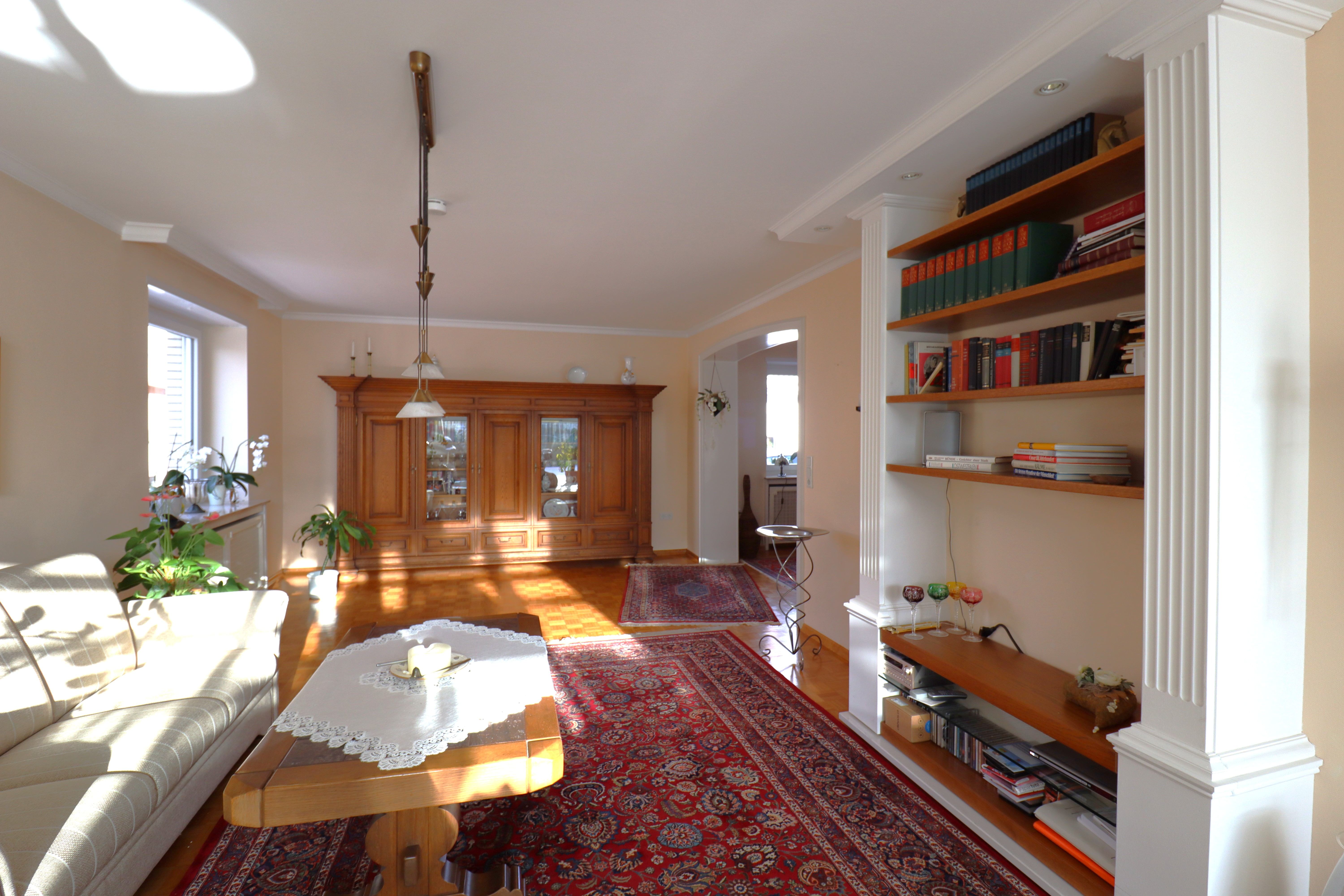 Im Stadtteil Ennigloh liegt diese großzügig geschnittene Erdgeschosswohnung in einem zwei Parteienhaus. Das Haus wurde 1990 modernisiert und wird seit 2024 mit einer Wärmepumpe beheizt. Mit einer Größe von ca. 139 m² teilt sich die Wohnung auf in: Wohnzimmer mit Zugang zum Wintergarten mit Kamin, Esszimmer und einer voll ausgestatteten Küche, einem Flurbereich mit Gäste-WC und einem Privatbereich mit Bad und Schlafzimmer.